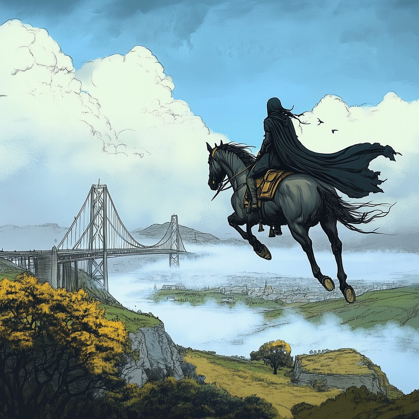 They gallop faster than the trolley, faster than the fog, faster and faster until the stallion leaps off the Embarcadero, over the Bay Bridge, and carries Fritz to a place he has only ever seen in his dreams.